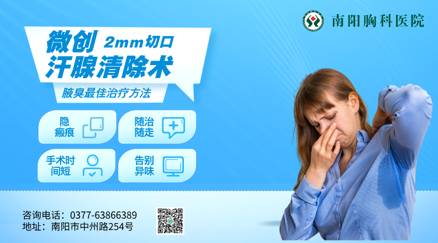 目前可以采取“针孔式微创汗腺清除术”治疗。该手术采用长效局麻,在腋窝作2mm的小切口,再通过小切口用抽吸管进行皮下浅层抽吸,将汗腺组织彻底破坏和吸出。在治疗过程中没有痛苦,治好后没有疤痕,消除了患者的后顾之忧。